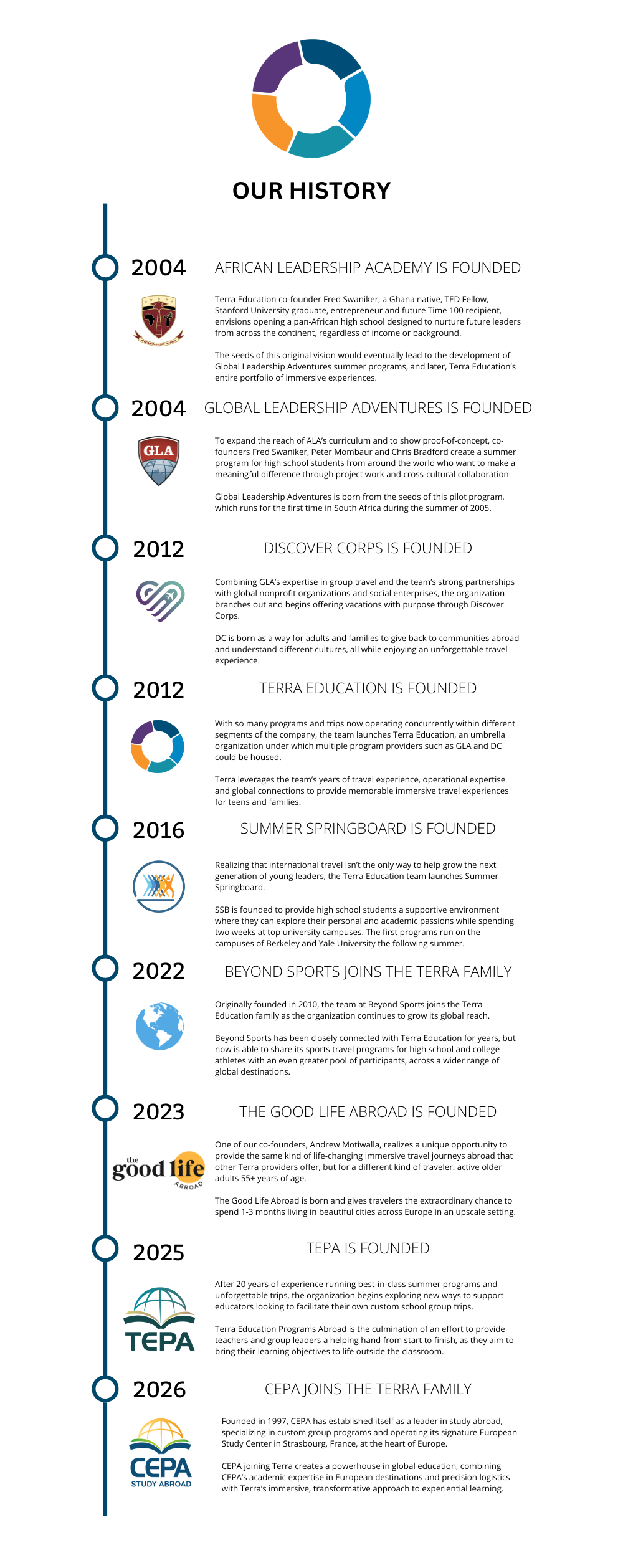 At Terra Education, we create and operate best-in-class immersive education and travel programs, intentionally designed for teens, youth, families and active older adults. Choose from one of our exceptional trip or program providers in our portfolio to begin your journey.